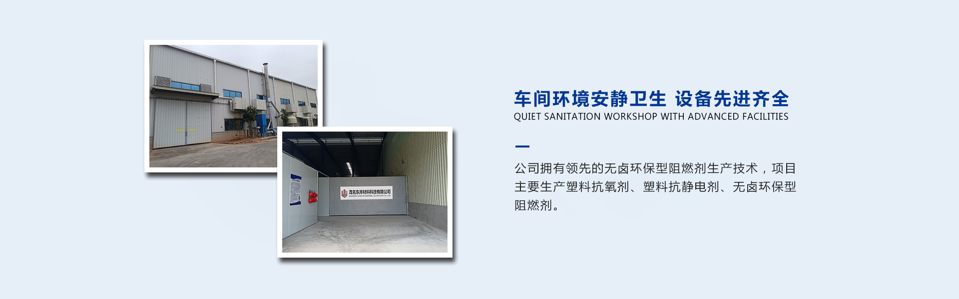 公司擁有先進的無鹵環(huán)保型阻燃劑生產(chǎn)技術(shù),項目主要生產(chǎn)塑料抗氧劑、塑料抗靜電劑、無鹵環(huán)保型阻燃劑。